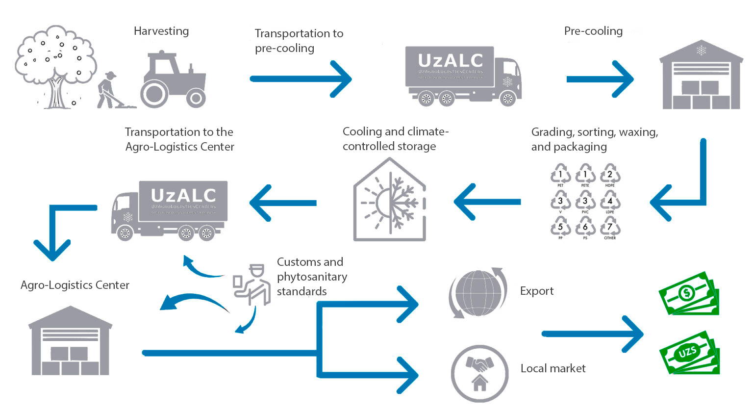 The specialized management company UzAgroLogisticsCenters was established by the Ministry of Agriculture of the Republic of Uzbekistan for the development and management of a network of Agro-logistics centers in the territory of the Republic of Uzbekistan.